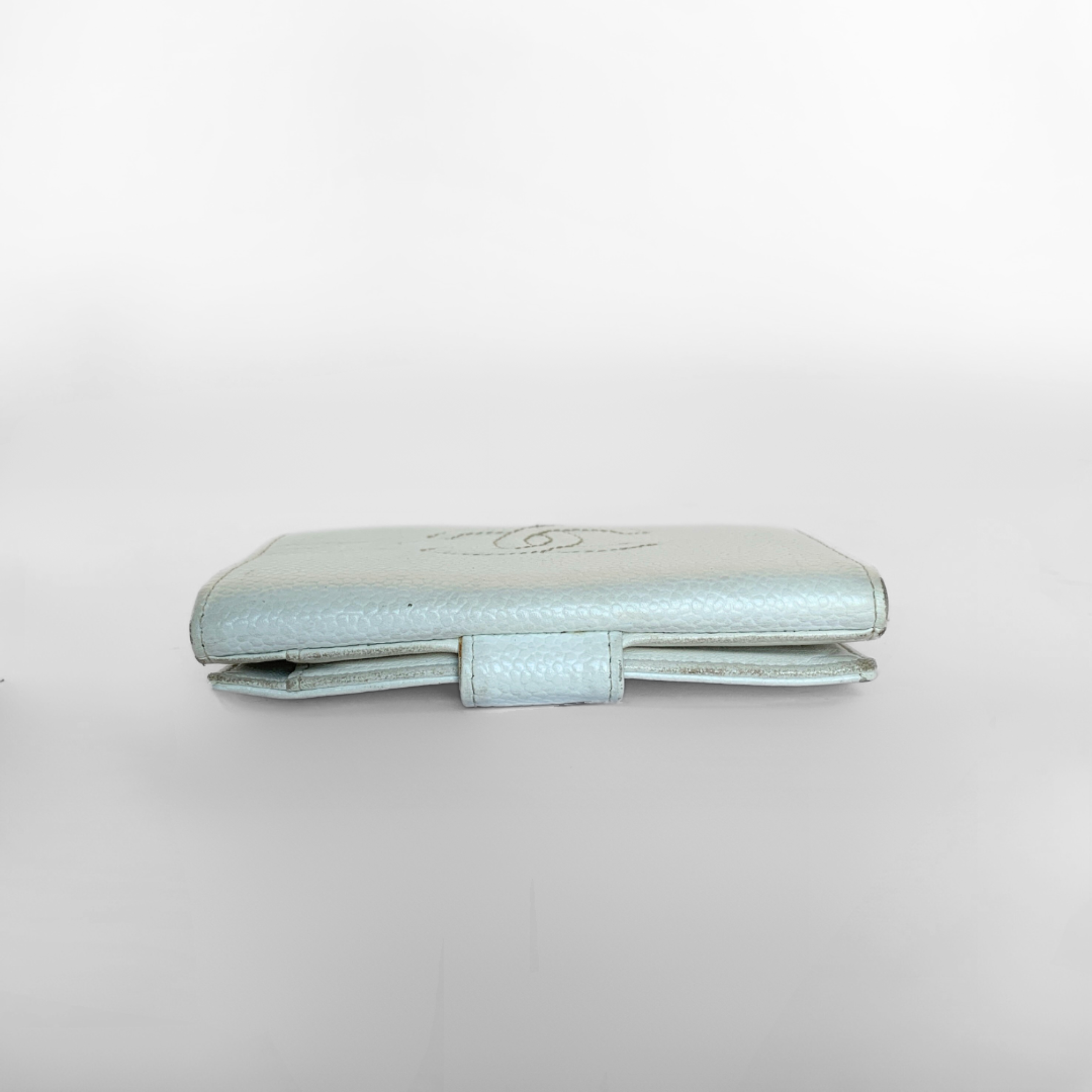 Chanel CC Wallet in size small, made of Baby blue Caviar Leather. A timeless and truly iconic wallet for everyday use, because of the perfect size of the wallet and the multiple compartments.