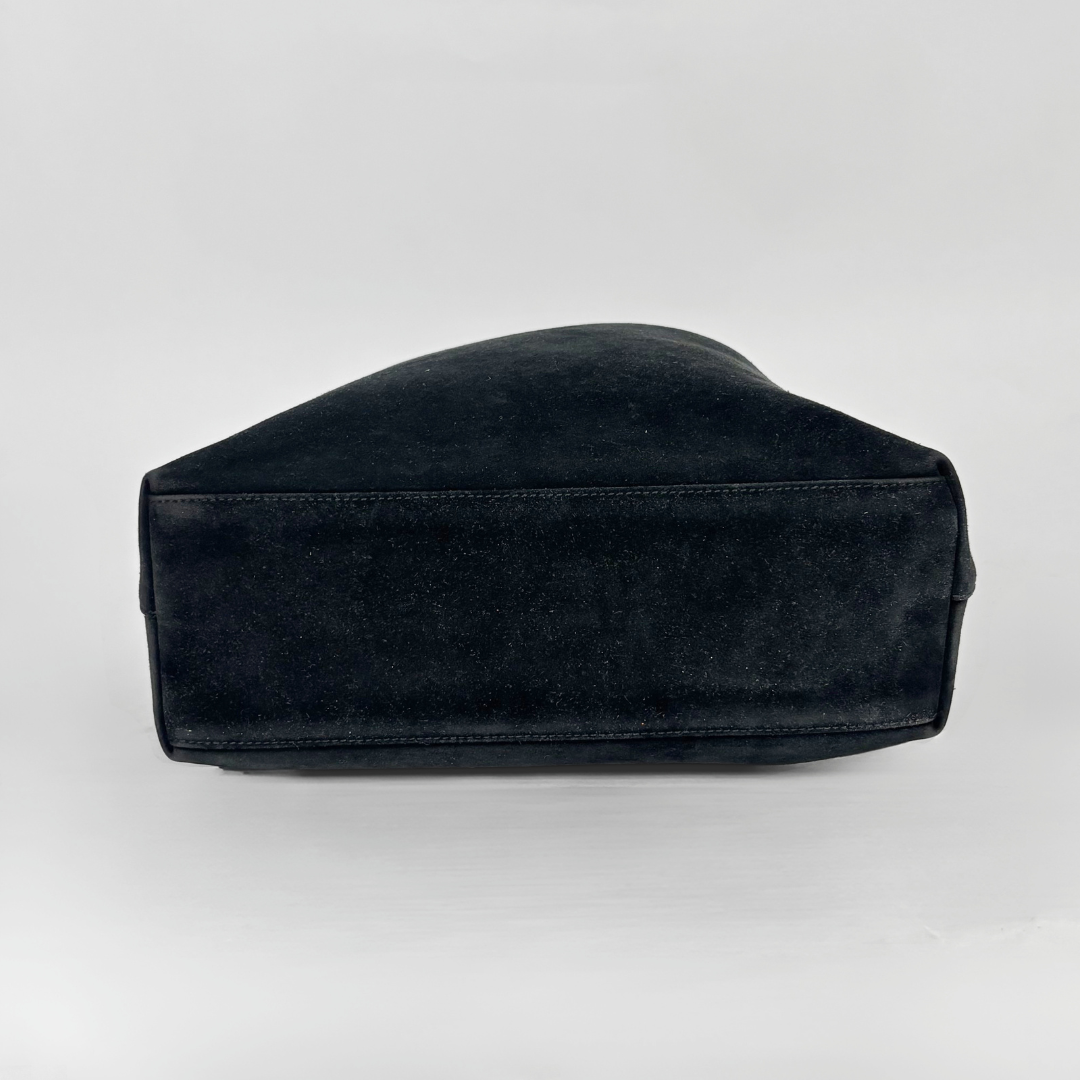 Gucci Suede Leather Bamboo Shoulderbag in black. Complete your look with this perfect bag from Gucci, sized to fit your everyday essentials. Gucci artisans have been meticulously crafting the iconic bamboo handles for generations, making a Gucci Bamboo bag one of the most timeless bags a shoulderbag lover can buy.