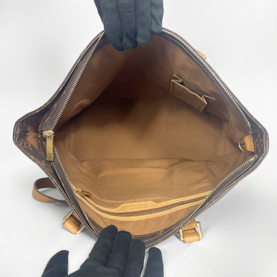 Louis Vuitton Cabas Mezzo made of Monogram Canvas. The bag has gold-colored hardware and the famous Vachetta Leather trims and shoulder straps. The popular Monogram Canvas gives a timeless style to the bag. The spacious layout makes the bag suitable for all kinds of daily activities.