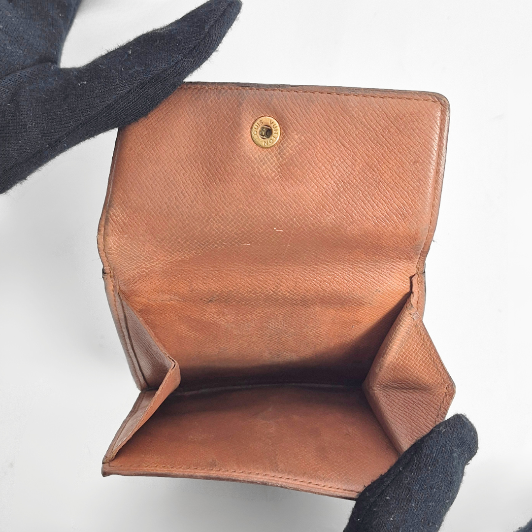 The overall condition of this wallet is good, due to the state of the canvas and the gold hardware. The gold coloured hardware button is slightly discoloured.