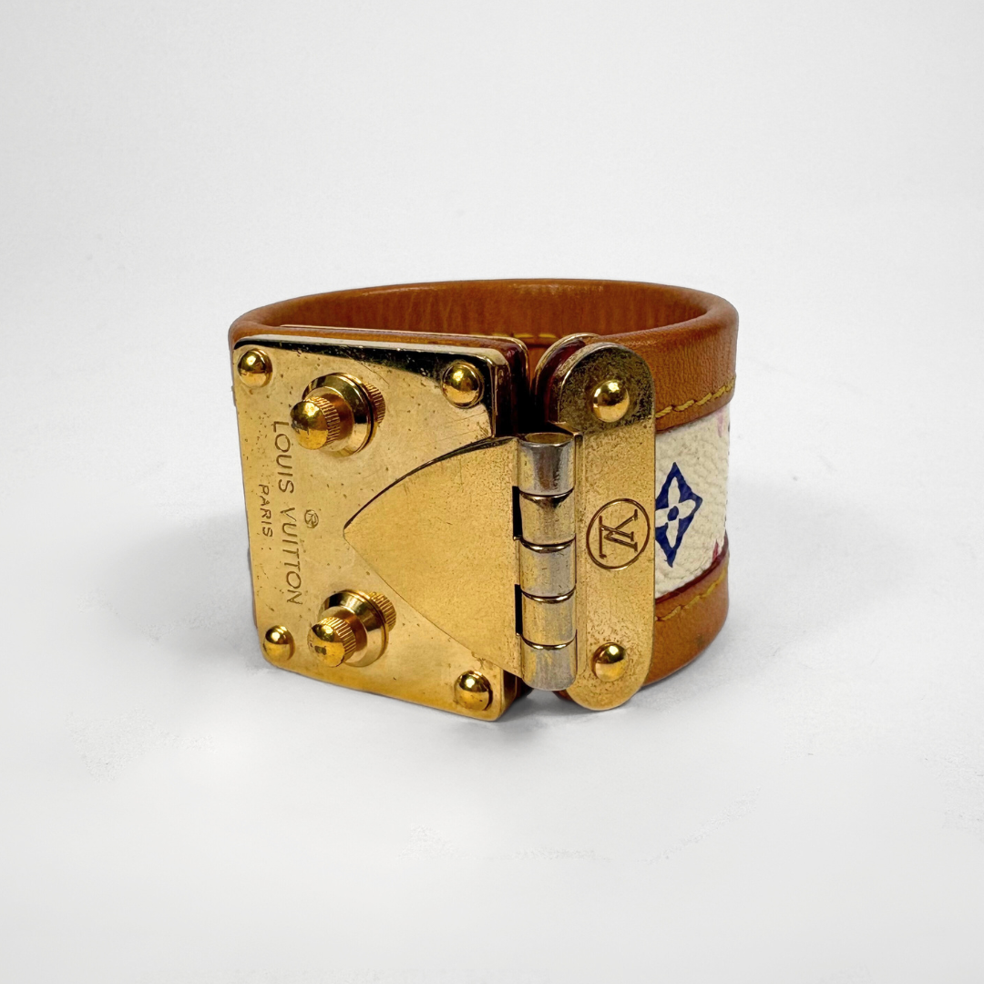 This authentic Louis Vuitton Monogram Multicolor Bangle exhibits minor signs of previous use, including slight discoloration and small spots. The hardware shows faint surface scratches.